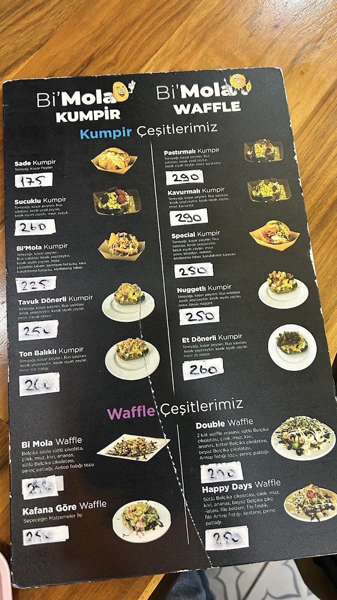 Welcome to Bi Mola Kumpir, a cozy gem nestled in Mevlana, Kayseri. This family-run establishment serves up some of the most delectable kumpirs in the area, offering a warm and inviting atmosphere perfect for all ages. The menu boasts a variety of kumpir options, each prepared with fresh ingredients like creamy butter, melted cheddar, and an array of toppings such as spicy sujuk, olives, and homemade salads.